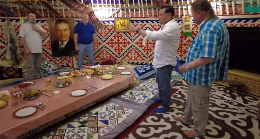 … Наконец, наш «горный лимузин», скрипнув тормозами, остановился у пяти белоснежных юрт, расположившихся у прохладных ключей. Нас пригласили в первую, самую большую и самую красивую. Когда малость обосновались, утолили жажду кумысом и шубатом, Бауржан Кенесбекович провел для нас небольшой мастер-класс на тему: «Что такое казахская юрта?». Объяснил, из каких материалов строится жилище, как называются его конструкции. Отметил, что благодаря кошомному покрытию в нем зимой тепло, а летом – прохладно. Двигаясь по кругу, показал, где распологаются мужская и женская половины, где находятся төр (почетное место) и очаг. Обстоятельно объяснил особенности внутреннего убранства.